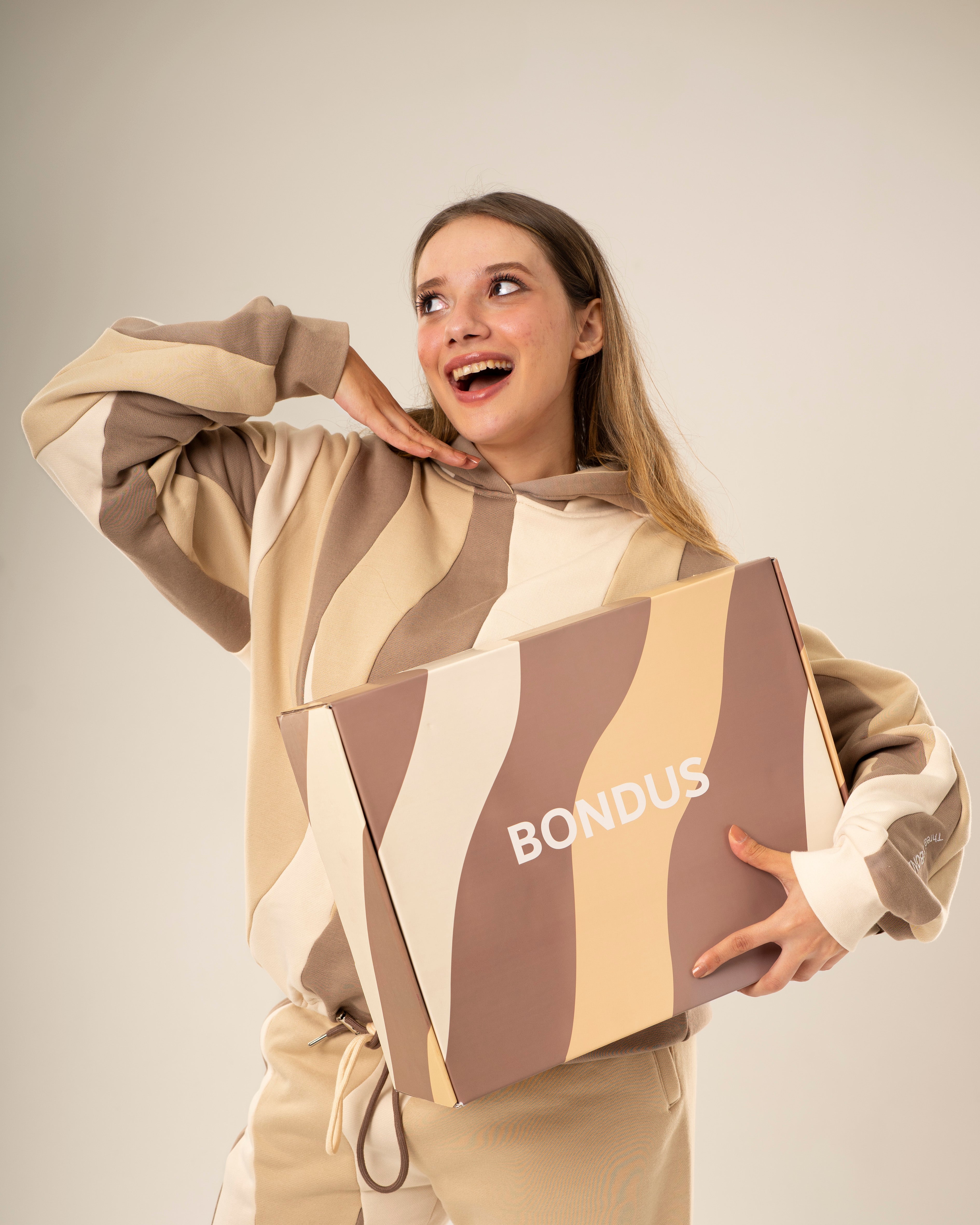 Bondus brings color-soaked comfort with custom-striped sets crafted for everyday movement.”